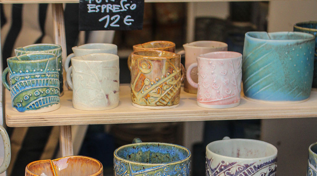 I work with highfired stoneware and porcelain as well. Mostly slab built mugs and vases, small or bigger bowls. I like to use material like paper. I create shapes by folding. The patterns are olso mine. I designed the motifs and decor on all my items. This creates a fresh and youthful look. Actually the majority of buyers are young.(appr 30 y) Sometime I create scultrors and wall pictures.
